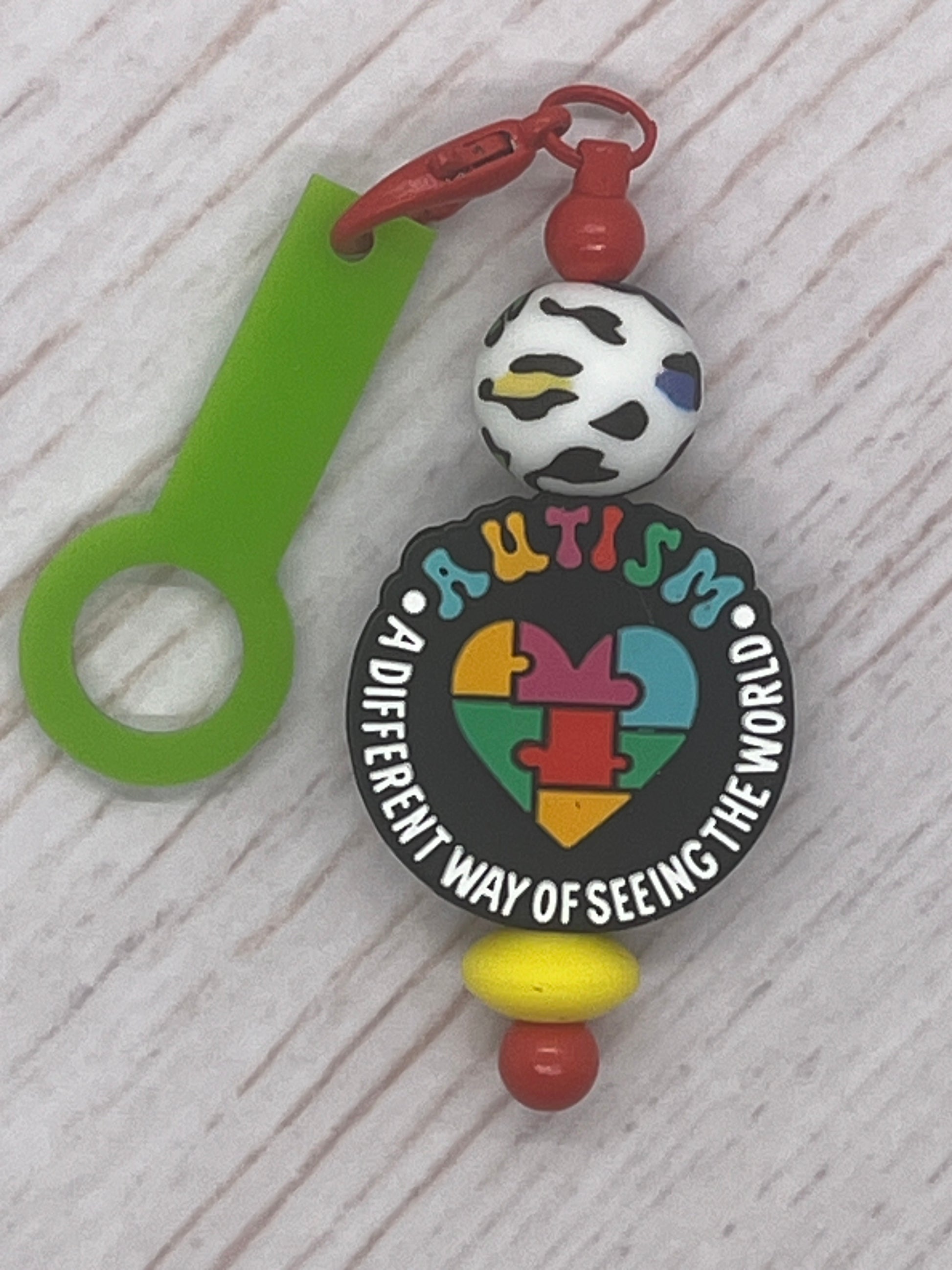 Charms can contain silicone beads, acrylic beads, or wooden beads.